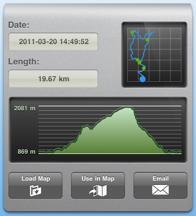 Über 'Email' kann der Track ganz einfach versandt werden. Voraussetzung dafür ist natürlich ein eingerichteter email Client auf dem iPhone.
